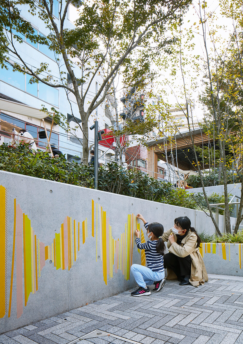 マスキングテープのアートとサインが、カラフルに北谷公園と周辺のまちをハック!