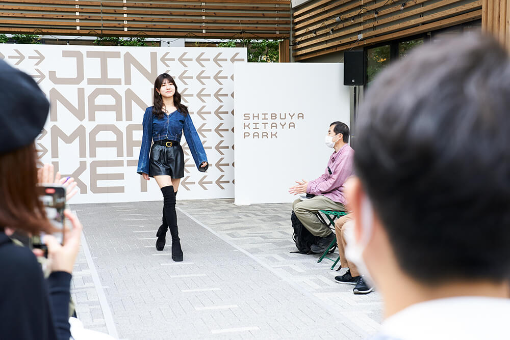 自分で作った服を着て、北谷公園のランウェイエリアを舞台にファッションショー【JINNAN RUNWAY#1】へ出演。